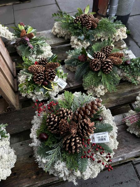 - Et stort udvalg af gravpynt, alt fra mospuder, kranse og sammenplantninger.